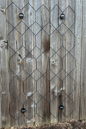 The Burghley Wall Trellis is crafted from 0.79” steel tubing and steel bands that is hot dip galvanized and powder coated black. Attachment hooks provided the recommended wall trellis distance of 3.94”. Wall plugs and screws are not included.