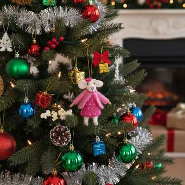 Mouse in Sweater and Scarf Felt Ornament