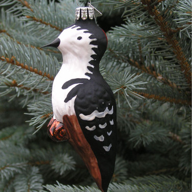 • Blown glass ball ornament with holly leaf design