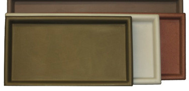 The rectangular saucers offered here are crafted from a concrete and resin mix strong enough to hold heavy concrete planters. The concrete/resin mixture is very durable and holds water perfectly. As you can see from the image, the saucers have ridges inside them to allow the planter to be elevated just enough to allow for drainage and water to evaporate from the saucer.